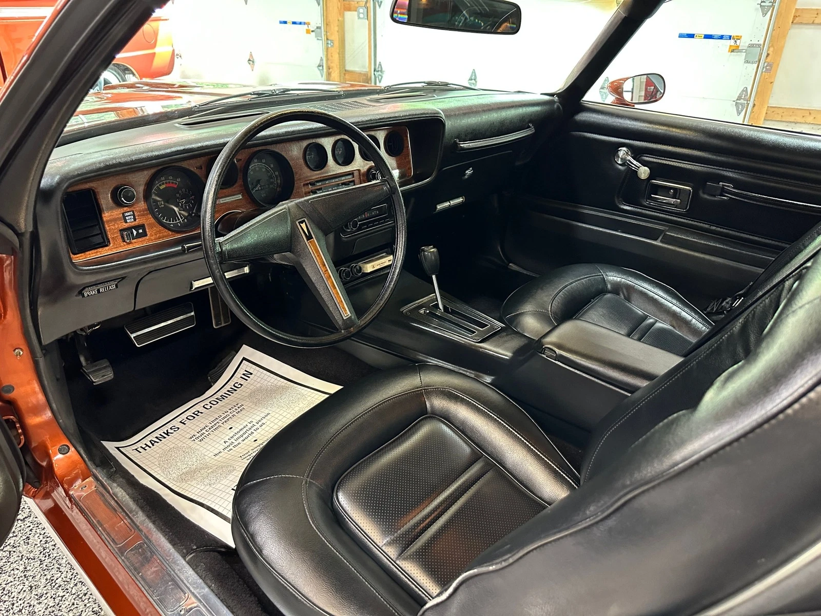 The interior looks as clean as the exterior and engine compartment, with black vinyl high-back bucket seats and full instrumentation. It also has an 8-track player because it’s a ’70s Firebird, making it practically a prerequisite.