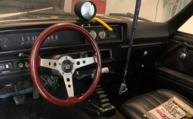 It’s a little surprising that there aren’t three pedals inside, but at least the automatic is controlled by a cool aftermarket shifter, which sends the power to a 12-bolt Positraction rear end. A large tach ably conceals a crack in the top of the dash, with a couple of additional gauges mounted to the right of the factory speedometer. Besides the steering wheel, most of the rest of the interior appears stock, with the bucket seats seeming to be in nice condition. The carpet is showing some wear on the driver’s area, but sticking a black floor mat on top should solve that issue quickly and inexpensively.