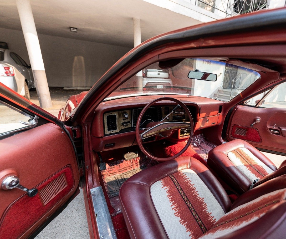 The interior features the original “Navajo” pattern, which remains in excellent condition. Plastic covers are still in place over the carpeted floor mats and the dash shows no signs of cracking. The Pacer is equipped with every option available, according to the seller, including AM/FM 8-Track stereo, air conditioning that still blows cold, working dashboard clock, and original 14 inch ribbed wheels.