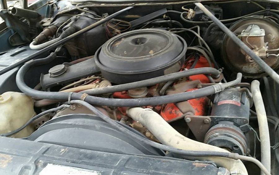What did sell in ’73, and ’74 was a Camino equipped with a 454 CI V8 engine and a four-speed manual transmission – and that’s how this example is outfitted. The owner of a Chevrolet dealership where I worked those two years ordered up a small fleet of so-equipped El Caminos in the spring of both years because he knew they were popular – and they did sell by mid-summer. The owner of this example states that the 245 net HP engine, “Runs and drives will need to be trailered“. The engine in this example looks amazingly original and non-modified. The only thing noted is the lack of a drive belt for the A/C compressor.
