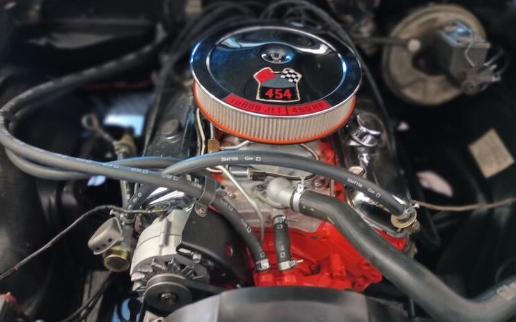 So, the heart of the beast is the 450-gross HP 454, CI V8 engine. The one in our subject car is not original to it, it’s coded “CE” and is, ostensibly, a warranty replacement block swapped out in ’71. The seller claims the heads, however, are from the original engine. What I noticed, under the hood, at first glance is that this is a non-cowl induction model and every genuine one of those that I have witnessed came with a dual inlet, closed-element air cleaner. This car is wearing a typical fourteen-inch Chevrolet open-element piece. Also, the PCV valve has been replaced with a chromed breather (driver’s side valve cover) and the oil fill (passenger side valve cover) is a black rubber plug – it should be a chrome-plated twist on/off cap. Beyond that, it looks as it should, including the A.I.R. pump. The Turbo-Hydramatic 400’s “CY” code is correct – this is a heavier-duty version of the already heavy-duty 400 and is proper for this car. The transmission tag’s Julian date is 353 (December 19) so this car would be a very late ’69 or early ’70 build. The differential ratio is not stated but I believe there were only two available, either 3.55 or 4.10. So, how’s it run? Well, it looks like it should be a spectacular performer but the listing is silent on that matter.