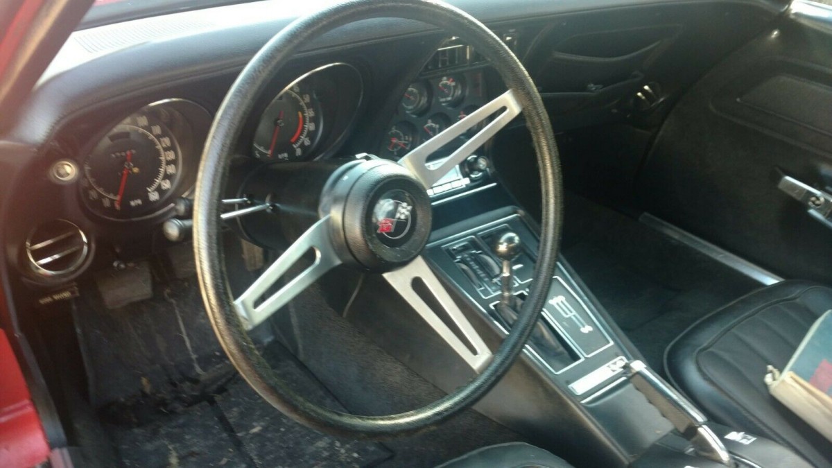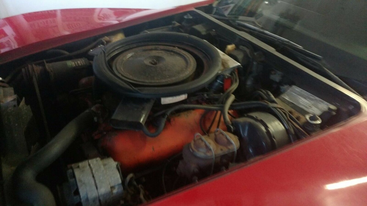 The engine does not appear very clean but is reported to be all there. In 1973, there were three engine options. The base L48 350 cubic inch V8 engine produced 190 hp. The optional L82 350 cubic inch V8 engine replaced the LT-1 and produced 250 hp. This car was equipped with the optional big block LS-4 454 cubic inch V8 engine that produced 275 hp. Only 15% of the Corvettes produced in 1973 came with the LS-4 454 cubic inch V8 engine.