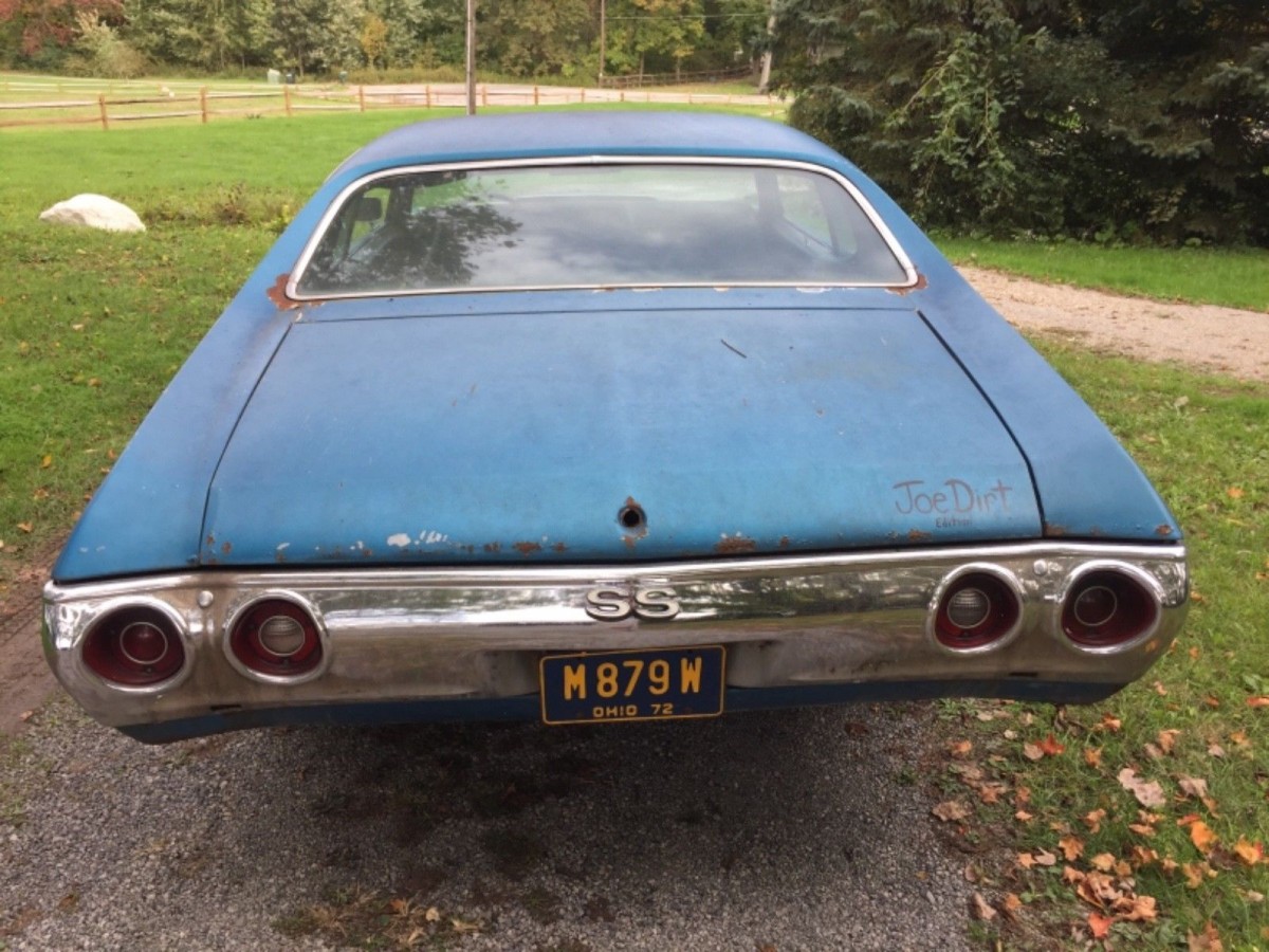 This car looks to me like it is either an SS or was the recipient of a bunch of SS parts from a car that was parted out. For the this year, there is no way to tell from the VIN if it was an SS or not. I did this to a 71 El Camino back in the 80’s, although the parts were off a wrecked 70 Chevelle SS. I got everything “SS specific” (12 bolt, disc brakes, SS hood and dash) but the 396 engine and TH400 trans. It had already been pulled. The car listed here has a lot of equipment that a non SS “Malibu” would not have had: domed hood, SS gauges, 12 bolt rear axle. I wonder if it has disc brakes… That would be the last missing piece. What happened to the SS emblems, though? It’s too bad that the rust bug has already pretty well claimed it. Good parts car, IMO. It’s already bid up to $8k. Somebody is “high on the pot” like comedian Kevin Meaney’s mom would say.