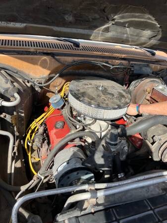 This 3/4 ton pickup is equipped with the largest engine available in 1986 which was the 454 cubic inch V8. In the Chevrolet pickup, the 454 cubic inch V8 engine replaced the 402 cubic inch V8 engine in 1973. It was rated at 230 horsepower and 360 lb ft of torque. The engine is backed by a column shifted automatic transmission. The seller bought another truck and is ready to part with this one. The ad states in one place that the truck has 53,000 miles and another place 52,000 miles. Either way, that is low mileage for any truck of this vintage. The engine is adorned with an aftermarket intake and air cleaner. A new carburetor and fuel pump were recently installed.