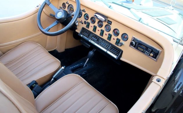 Buying an Excalibur represented a reasonably significant financial investment, and buyers rightfully expected plenty for their money. This Phaeton delivers via an interior trimmed in Tan leather, with air conditioning, a radio/cassette player, and a brace of gauges to monitor the car’s health and progress. Ergonomics didn’t play a key role in interior styling, with the stereo well beyond the reach of the driver. Otherwise, there is little to criticize. There is no visible wear or signs of neglect, the dash looks crisp and clean, and the contrasting carpet is excellent.