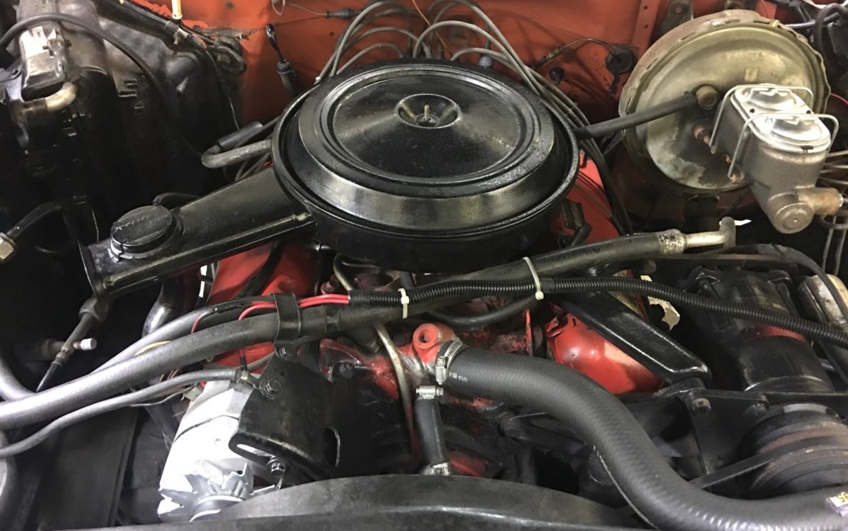 Moving inside is like being transported back in time – it has all of the ’74 era styling cues with yards of tan vinyl and wood applique accents. The usually destroyed GM dash pad appears to be perfect and the cut-pile carpet, which was new for ’74 replacing the older style nylon loop, is just right – some minor wear and fading but that’s about it. It is a very functional environment. The seller adds that the R12 A/C system has been recharged and works – a nice operational aspect that is frequently not the case in older vehicles.