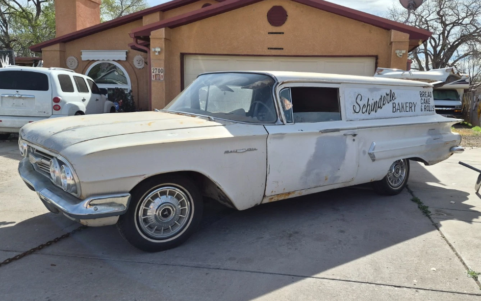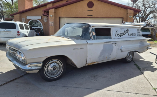 Chevrolet’s first Sedan Delivery dated back to the late 1920s, just in time for the Great Depression. When Chevrolet built 5,810 copies for the 1960 model year, it was less than one-half of one percent of overall automobile production. So, surprisingly, there was no 1961 Sedan Delivery, leaving that sort of business to the truck division. These vehicles came with either six or eight-cylinder power, in other words, a 235 I-6 or a 283 V8. Whatever lived under the hood of this Sedan Delivery when it was out delivering cakes, it has since been replaced by a bulging big block.