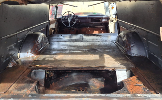 We’re told this Chevy has been in a private collection and has been living in dry storage for some time. Rust has been kept to a minimum, though the floors in the passenger compartment are brand new. The seller estimates the vehicle is 98% complete, so perhaps the other 2% includes the bench seat. Also, the rear glass in the back door looks to be MIA.
