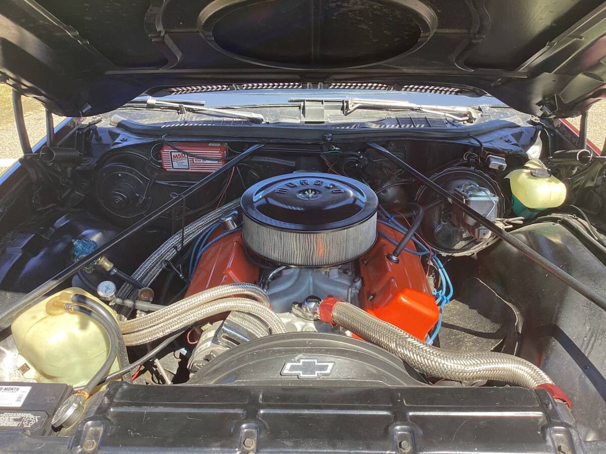 You can see a MSD box on the left and the engine has a low rise single plane intake,im sure the hp numbers are well into the 300hp+ and with a 4spd you can run a very aggressive cam which this one probably has.you don’t even start hitting the powerband until 2500rpm with that intake.I bet this Chevelle is a real beast with a mild demeanor…..