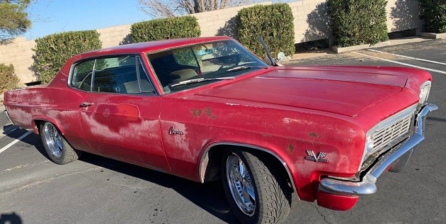 The key selling point for this ’66 Caprice, besides that it has survived, is that it gained a bigger engine at some point, at least from the 1970s forward. The odometer has rolled over and the mileage on the overall auto or its acquired engine is an unknown. We’re told the vehicle “runs and drives” without saying how well it performs those tasks. The 454 is paired with an automatic transmission, but we don’t know which one or whether it came later with the motor.