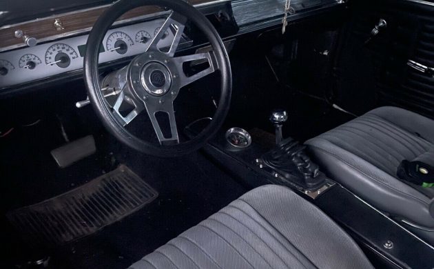 The interior looks quite modern with grey bucket seats from another era. And the instrument cluster is all-new with digital additions like the Dakota speedometer. Quite impressive, especially at night. The paint job is probably okay, though the seller does point out a flaw or two. If the car runs as well as we suspect, this could be a turnkey car for Cars & Coffee with a little detailing. And as a word of advice to future car sellers, you’ll have a better presentation by taking landscape photos rather than portraits. It’s hard to get the whole car squeezed into a photo taken straight up.