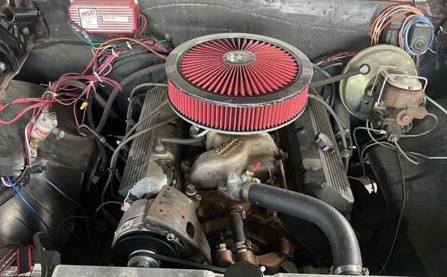 We don’t know the history of this car, but it looks as though several steps were taken to improve its mechanical acumen as well as the comfort of the passenger compartment. The timing of the transformation is unknown, but the engine now deployed wasn’t available before 1970, so that’s the oldest this replacement motor might be. The car has a reported 93,000 miles on the odometer, but the experience of the engine isn’t mentioned.