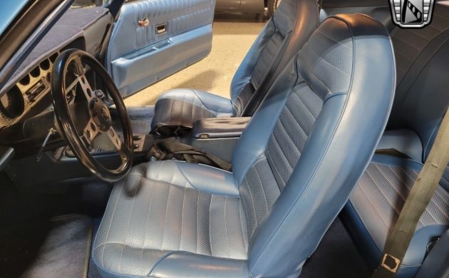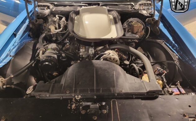 The car’s Blue vinyl interior complements this Trans Am’s exterior Lucerne Blue paint. Its condition is generally good for a vehicle of this vintage, with no evidence of abuse or neglect. The only concern that I have is for the state of the dashpad. Someone has dropped a cover over it, which I am itching to lift to determine whether the pad is cracked or showing other signs of UV damage. The dash houses a Pioneer radio/cassette player, although the factory AM radio and 8-track player reside in the trunk. Reinstalling those items would return the interior to a more stock appearance. The first owner equipped this classic with air conditioning, which the seller confirms is inoperative.