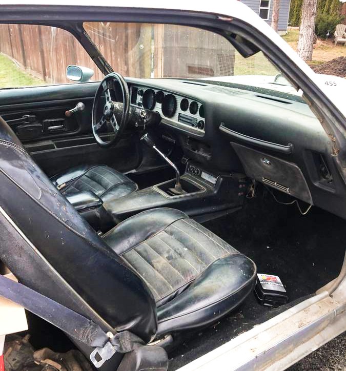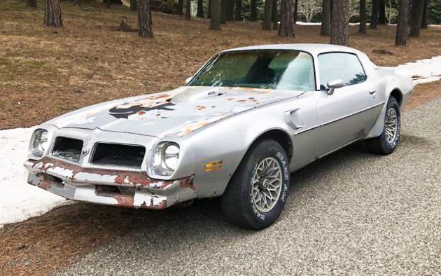 While Ford, Dodge, and Chevrolet were gutting their muscle cars, Pontiac offered their 455 cubic inch V8 engine all the way through 1976. This engine was only offered with a Borg Warner T-10 4 speed transmission and a 3.23:1 performance rear end ratio. Total production of the Trans Am increased from 27,274 to 46,701 from 1975 to 1976. This example is a 1976 Trans Am that is equipped with the optional 455 cubic inch V8 engine. It is listed for sale here on Craigslist for $13,900. It is a project car but is said to run and drive great. The car is located in Coeur d’Alene, Idaho just east of Spokane, Washington. Many thanks to Rocco B for finding this gem.