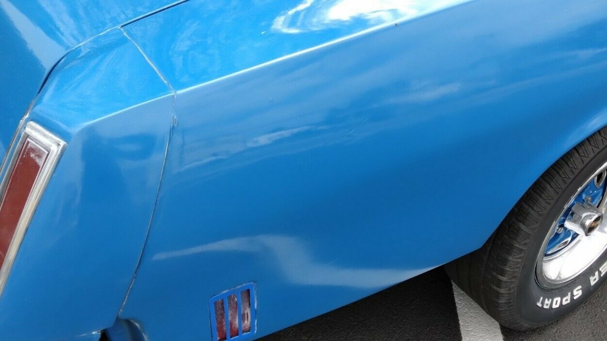 This, my friends, is what an inner-city car looks like that was painted at some inner-city body shop that specializes in painting taxis. Maaco would be a step up from this level of body and paintwork. Caveat emptor. Sadly, this appears to be a real 455 car…anemic, but still a 455.