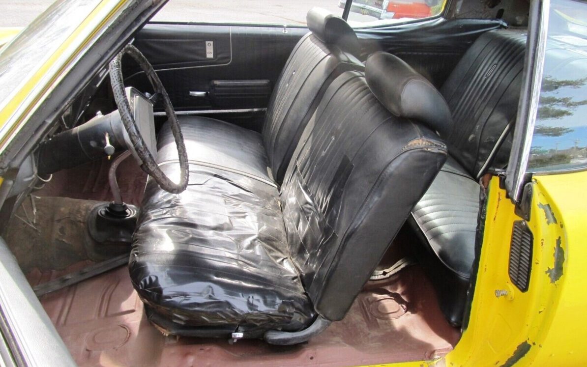 Screaming Yellow was not in Buick’s color palette for 1970. I’ll take my GS 455 in Diplomat Blue with Sandalwood upholstery. Thanks to lov2xlr8 for some details. Only a copious application of black duct tape prevents rusty springs from corkscrewing into your derrière.