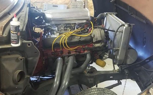 The interior shows some signs of originality with its ornamented instrument panel and original tiller but auxiliary gauges have been attached across the top of the dash, a sizable tach is perched on the steering column and a new wiring harness is in place. It’s not possible to get a broad view of the interior but what is visible looks OK. The seller mentions that the seats are from a late model Chevrolet pickup truck and the door cards have been finished off to match the seat upholstery’s grey color. The red dash may give some insight into this Special’s original exterior hue, not that it matters much at this point. Finally, it appears that this Buick was a “no radio” car as there isn’t any evidence of a dash opening for one.