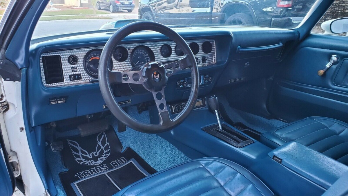 It seems that apart from some (but not all) recently renewed graphics and decals, this Pontiac’s exterior is original and unmolested. Its Cameo White paint shines impressively, with only the occasional small nick and mark visible in the supplied photos. The owner says that he rates it better than driver-quality, but that’s the closest term he can think of to categorize it. The panels appear remarkably straight, with tight and consistent gaps. There is no visible rust in the supplied photos, and the owner states that the floors are original with no undercoating. The tinted glass and honeycomb wheels appear faultless, while most of the trim is above average for a fifty-year-old survivor. There’s no doubt that the Trans Am would respond positively to some cosmetic restoration, but doing so would compromise its high level of originality.