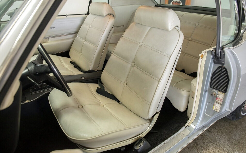 This example is as much a stunner as the ’72, even if it isn’t green. It’s a standard Model J, as opposed to the higher trim and more powerfully equipped SJ, and presents beautifully in its respray of Nordic Silver. Subjectively speaking, I wouldn’t have put a white vinyl top (and interior) with a silver exterior but I must admit that it works. And that vinyl top is not revealing any of the usual foibles frequently associated with that late ’60s/’70 styling theme. As far as the exterior is concerned, no complaints, it looks new! There are several images of the underside included in the listing and there are no worries there either – the seller mentions that this GP has always been garaged.