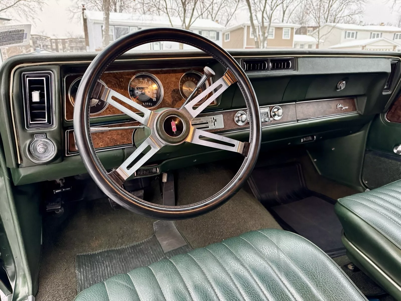 Car has a 4-bbl on it now. With an early December ’69 build date, if it’s an original 4-bbl car it has the W-32 option. That said, there are some inconsistencies with this car: I’m wondering why an “all original” car has a Cutlass S hood and grilles. The trim tag also shows upper and lower color to be Sherwood Green paint without a black vinyl top. The top is done in the correct factory “halo” effect. I prefer Supremes with vinyl tops, but I’m wondering what the history of this particular car is. I’ve owned a ’70 Supreme with buckets and no console, but that’s got to be a rare choice.