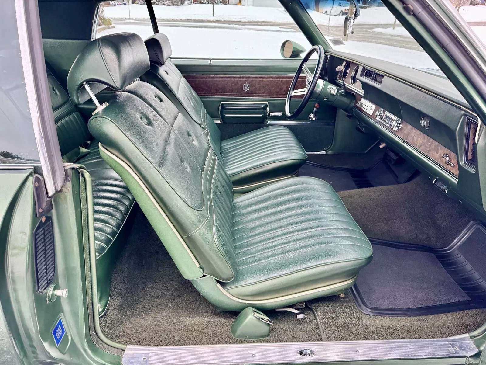 Looks almost exactly like my first Olds, ’70 Supreme, Sherwood green, black vinyl top and green interior, except mine was a bench. Repainting the SSII to the correct argent grey and getting a Supreme grille is easy enough, just too bad about the Cutlass hood. Pretty unusual to see a Supreme originally ordered without a vinyl top. Good luck to the next caretaker.
