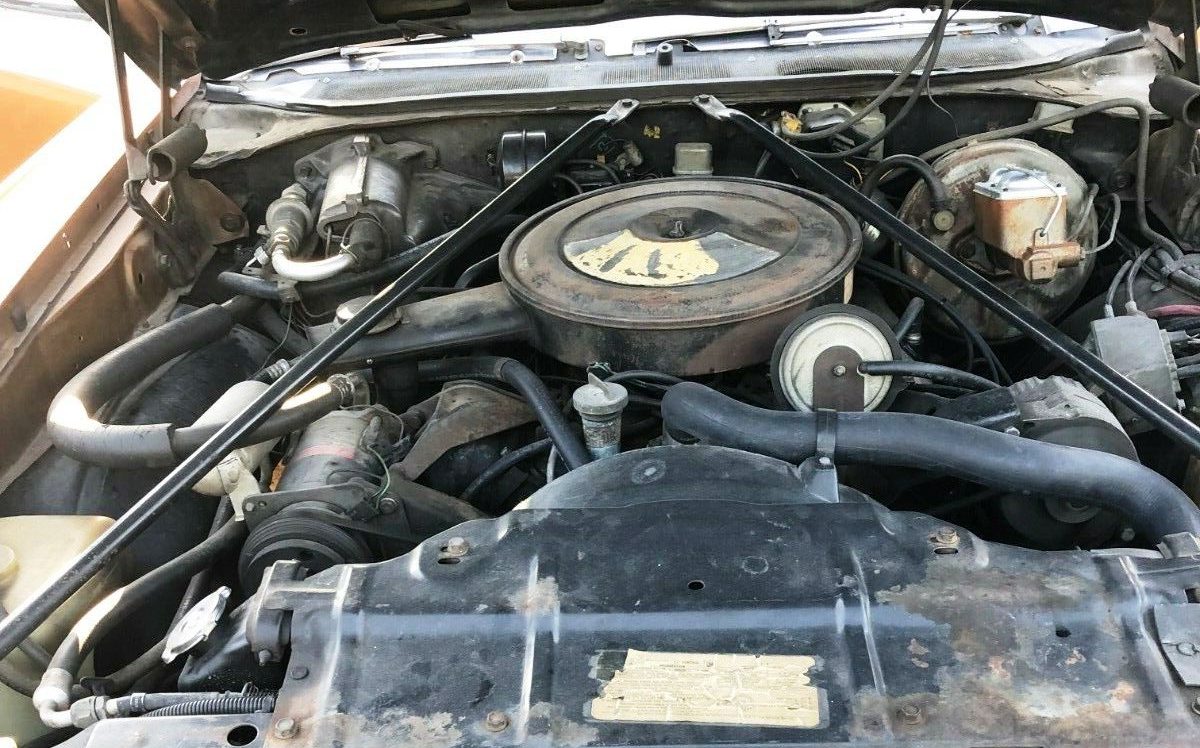 The listing includes the car’s original window sticker, showing options like the 455 engine for $193 , $245 Am-FM-Radio, $36 Power Tailgate, $418 Air Conditioning, $43 Superlift Rear Shocks, $45 anti-spin rear axle, and $65 Cruise Control for a total of $6156.26. Power Brakes and Steering were standard equipment on the Vista Cruiser. Parked since 1985, it’s been restored to driver condition with many new parts.