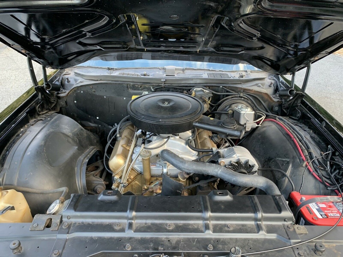 What a shame that the car has been stripped of most of it’s original equipment. No wipers, no heat, no A/C, no radio, and so on. Kills 5 to 10K of value right there. Engine ‘appears’ to be a 455, as they are noticeably wider than the 350/403 engines. Intake looks quite wide on this one. VIN indicates it had a 455 when new. If I was in the market for one of these, I would pass on this one for sure.