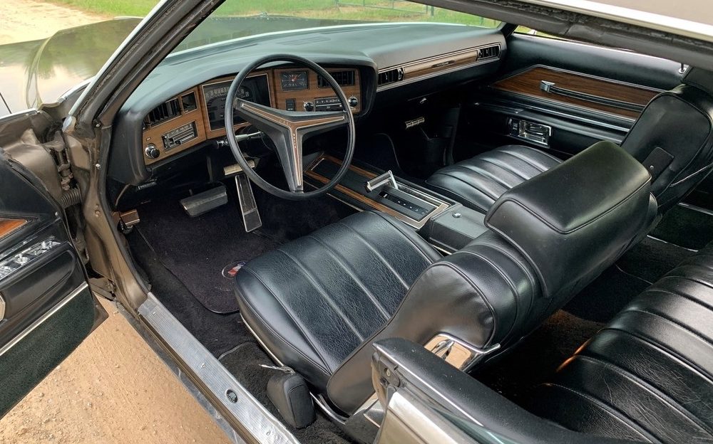 As to be expected in a personal luxury car the interior looks welcoming and conveniences abound, including bucket seats, full console with L-shifter, power windows, and power seat. A simple palette of black upholstery with woodgrain accents offset that luxury with simplicity, all of which appear to be in very good condition. While it does have air-conditioning, it does not blow cold.
