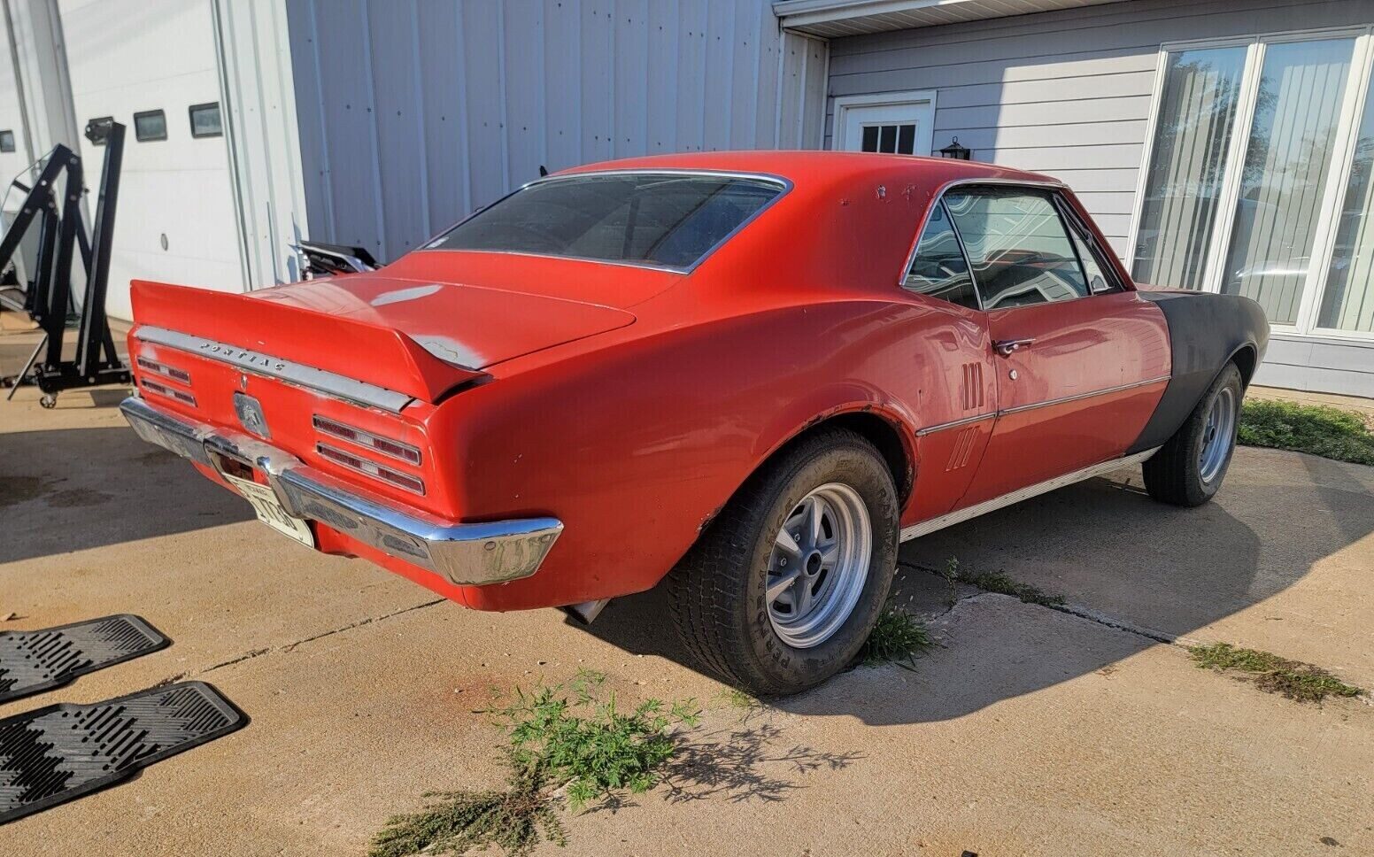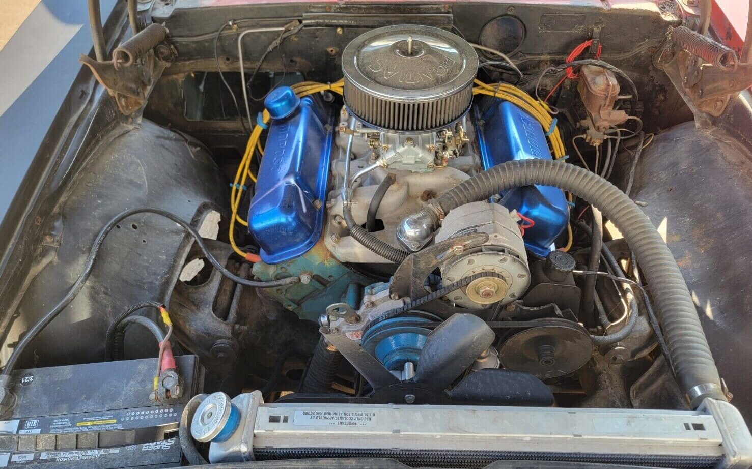 Hood has to go, car needs some work, but could be a hoot to drive provided that 455 is healthy. Rocker panel moulding is pop riveted in place. Get rid of the red, but could be a nice ride with some TLC. Myself I am a Pontiac type and prefer the Firebird nose and taillights. Enjoy the drive!