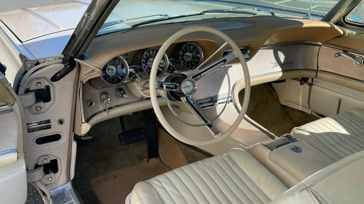 Turning our attention to the interior, it is one aspect of this Thunderbird that sends mixed signals. It is upholstered in Beige, which matches the exterior, and at first glance, it presents well for a survivor. There are rips and splits on the driver’s seat, and I believe these are beyond repair. The buyer will probably choose to source replacement seat upholstery, and if they want to ensure color consistency, they may decide to spend $640 on a complete set of covers. There are some cracked plastic trim items inside the car, and the tops of the door trims are also split. I noticed the dash pad has cracked towards the front on either side of the speaker grille, but one other aspect of this interior causes me concern. Closely examining the supplied photos reveals that some plated components have begun to bubble. This in itself is not a drama because they could be restored or replaced. My concern is that this could indicate that this car may have spent time in a damp environment. Once again, this reinforces why an in-person inspection is so vital. It may be nothing, but it is worth checking for peace of mind. There have been no after-market additions to this interior, and the original AM radio remains intact.
