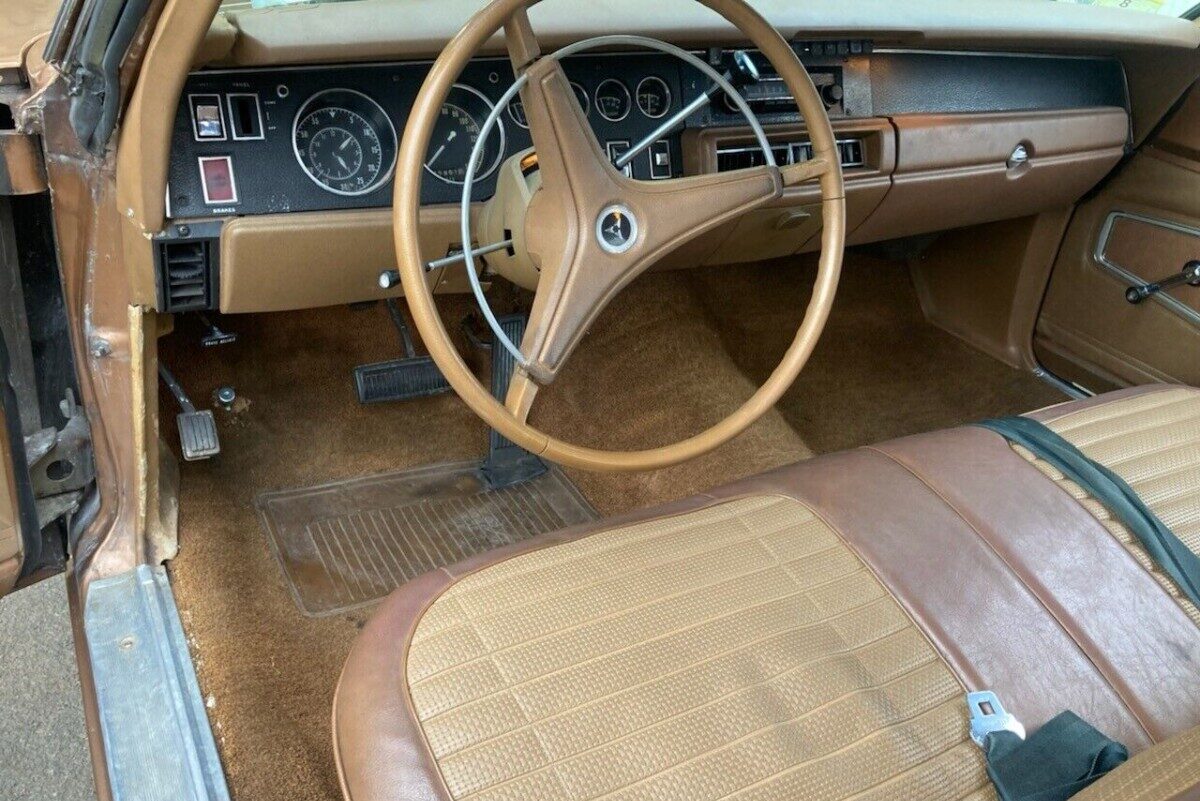 The Charger makes a positive first impression, with its Dark Tan Metallic paint exhibiting a stunning shine. The panels are straight, with no evidence of rust or other problems. The theme continues below deck, with the floors and trunk pan looking rock-solid. The seller admits the vehicle received a prior repaint, and I can confirm this occurred within the past two years. My detective work revealed a previous auction for this Dodge from November 2020 with better photos than those supplied by this seller. They show the Charger originally wore a faded White vinyl top, with rust developing around the chrome edge strips. The vinyl, strips, and rust, are all gone. The repaint extended into the trunk, and I believe the same person protected the floors with an undercoat. The glass looks excellent, as does the trim. The Dodge rolls on Magnum 500-style wheels that suit this classic’s character.