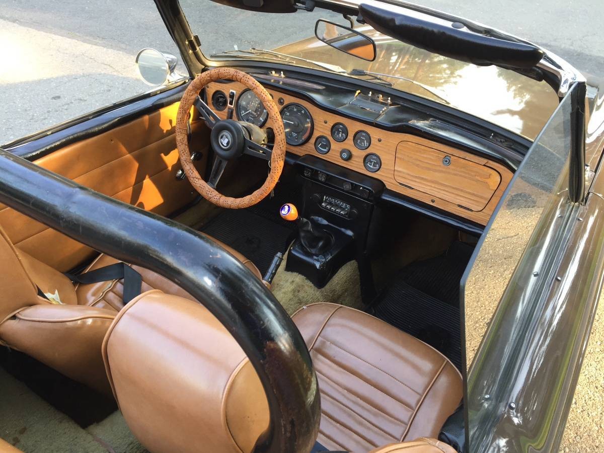 The interior of a TR6 is a snug place. I’m rebuilding a pair of seats for one of mine right now and hopefully, they will be a little more forgiving with new suspension and foam. Just look at the lack of clearance between the big steering wheel and the door panel! This one could use some upholstery work as well, and a new dash pad (readily available). While the roll bar looks cool to some, beware of one without wearing head protection. I can also tell you from experience that it cuts into seat travel on a TR6. This looks like a bolt-in bar that could easily be removed if you chose to do so. I wish there were pictures under the hood of the 2498 cc 6-cylinder that’s one of the best parts of these cars, but it does appear to be running in this picture based on the gauges. Is this “last of the hairy-chested British sports cars” (per Road & Track) worth a closer look?