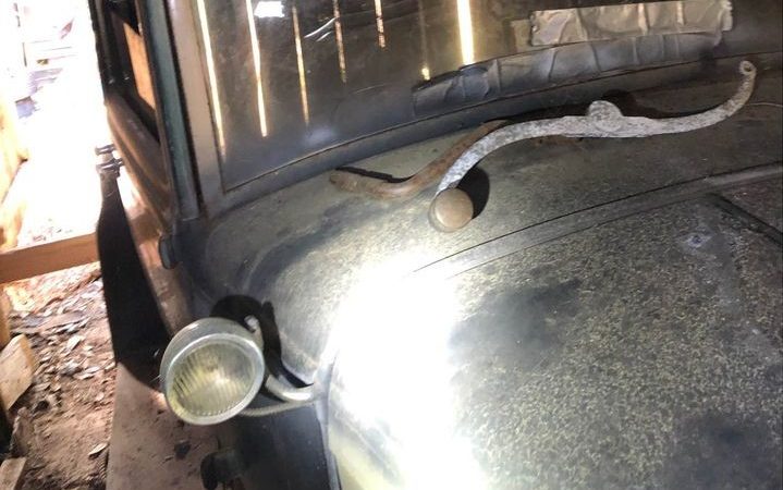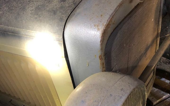 There is some minor surface rust that is visible but from what can be seen, and that’s not a lot, items like the radiator shell, fenders, and headlights are still in place. There was probably a front bumper attached at some point but it’s not visible among the few images.
