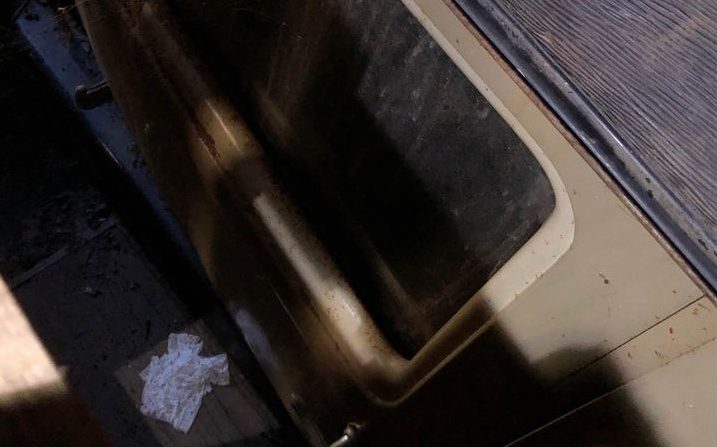 The inside is in pretty ratty condition. There is surface rust everywhere and the front seat is completely dilapidated. That said, the rusty floors don’t appear to be suffering from rust-through. Note the red brocade driver’s side door card, it looks like someone’s drapes from long ago have enjoyed a second, automotive life.