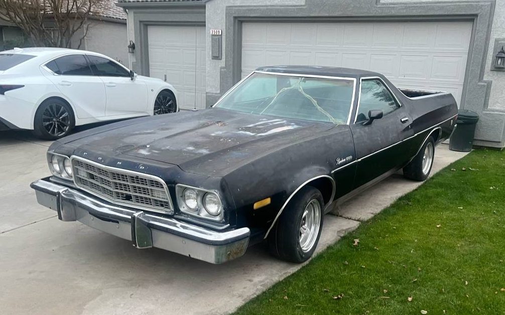 I’ve always had a “thing” for Chevrolet’s El Camino but have been indifferent towards the Ford Ranchero. I’m not sure why, after all, Ford beat Chevy to the introductory punch and jumped on the downsizing trend several years in advance. I don’t dislike Rancheros—no, not at all. I really appreciate the car/truck concept and if that were the case, I probably wouldn’t write this review. With that thought in mind, I’d like to present this 1973 Ranchero 500 and give it the once over – perhaps it will change my thought regarding Ford’s long-discontinued ute. Cooling its jets in Bakersfield, California, this non-runner is available, here on craigslist for $1,900. Thanks are due Tony P. for this discovery!