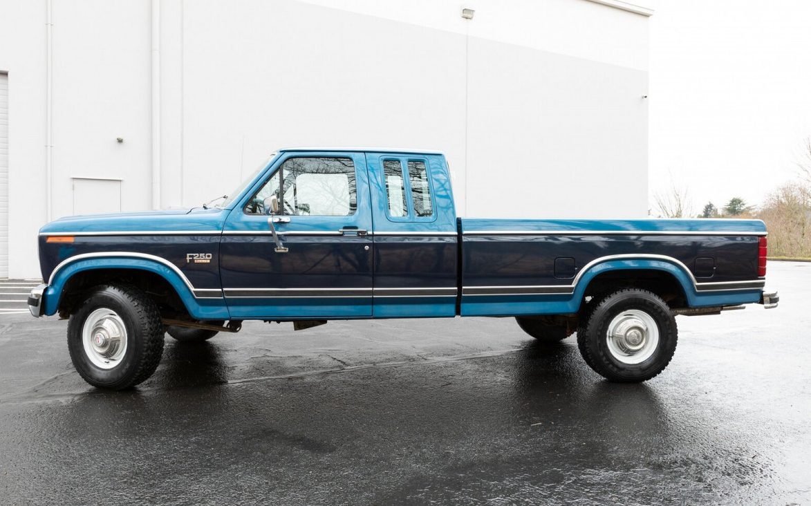A fabulous spread of magazine-quality pictures attests to the near-perfection of this 1984 Ford F-250 Super Cab XLT in Clackamas, Oregon. The well-equipped beauty has covered fewer than 36,000 miles, according to the seller, and while the phrase “all original” rarely holds water these days, deviations on this Ford may be limited to Day Two additions like fog lights and trailer accessories. Highlights include the attractive two-tone paint, XLT trim, air conditioning, cruise control, and the mighty 460 cid (7.5L) V8. The listing here on eBay has attracted at least 10 bidders and a market value above $10,800.