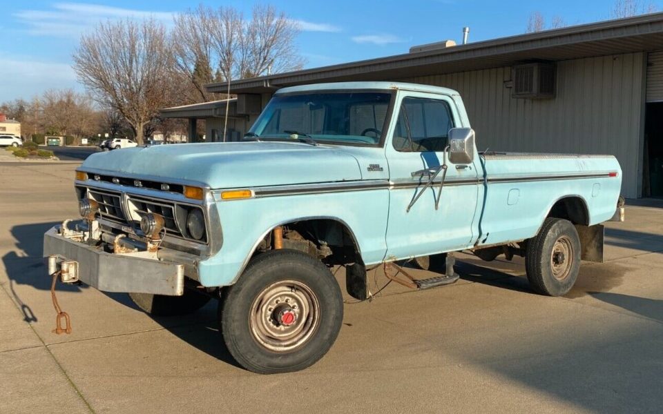 American full-sized pickup trucks set the gold standard for enduring punishment and being sentenced to hard labor. This 1976 Ford F-250 Ranger 4×4 Trailer Special in Anderson, California won’t win any beauty contests, but the owner-described “ranch truck” features a “strong” running 460, and may well have some life left to give. Bring a trailer, though, because some of the front driveline (at least) is in the truck’s bed. Check out more pictures and a staccato description in the laissez faire listing here on eBay. At least five bidders had taken a chance on this baby blue rig, raising its market value beyond $2900.