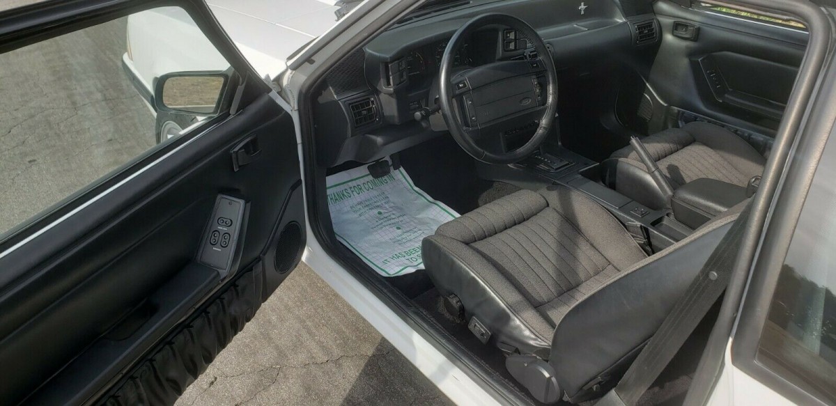 The original 5.0 liter engine sits in a tidy engine compartment and the car is said to run strong with no smoke or leaks. Most enthusiasts would like to see a manual transmission but this car is equipment with an automatic transmission with a floor shifter between the bucket seats. The seller says that the emissions system is intact and will pass California smog tests. It should be noted that the front end and brakes have been converted to Cobra parts to improved handling and braking.