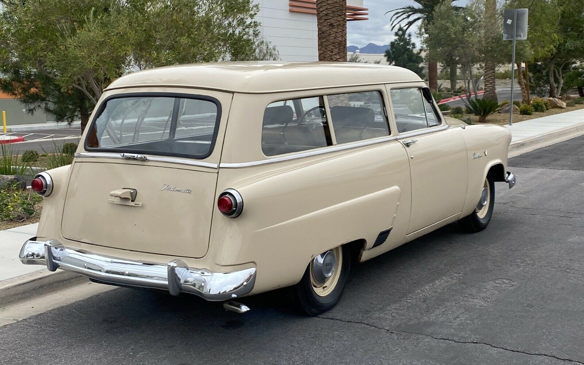 Love me the dumpy old wagons. And one like this, with zero trim, painted “Desert Blah”, with matching wheels and dog dishies and blackwalls is top notch authentic for the real, working class 50’s that are totally dismissed, in favor of a fantasy world of only teens driving over-chromed glamour barges they never could have afforded in the day.