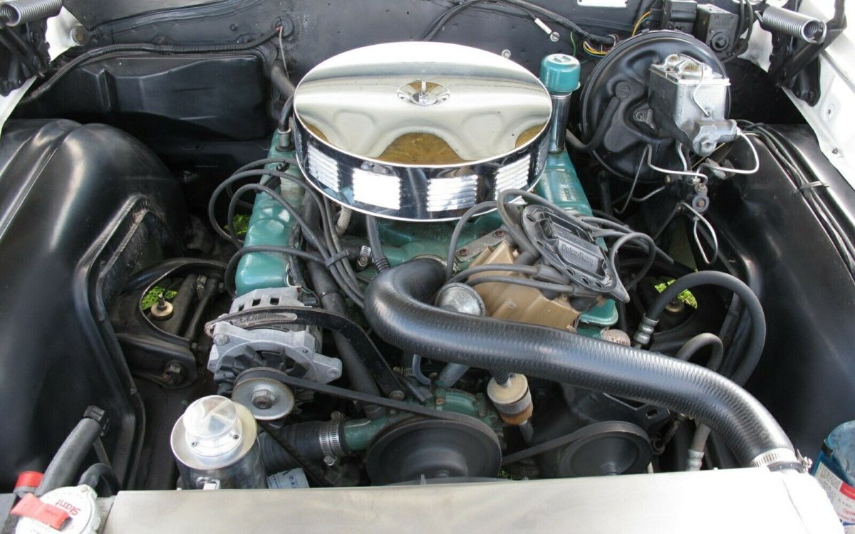 A 300-cubic inch V8 powers this Skylark. The automatic transmission was upgraded to a 3-speed in the late 90s. Other upgrades include a 4-barrel carburetor and aluminum radiator. The engine bay has been kept pretty clean, but a through engine detail would go a long way here.