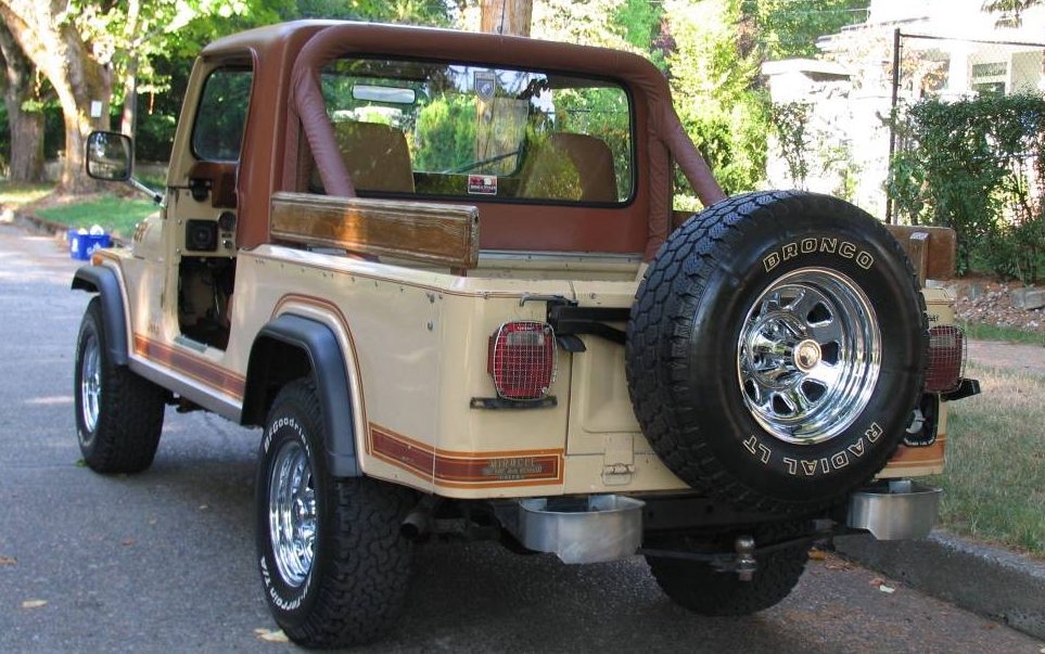 While the listing shows a Scottsdale, Arizona domicile, the listing claims that this example is actually in Washington state and is from a collection that is being thinned by its owner. With only a claimed 46K miles on its clock, it presents well though the fenders show signs of chips and nicks. The oh-so-’80s color scheme certainly dates this Jeep but the tape stripes and decals have passed the test of time – they’re still bright and not curled or cracked. Another bright spot are the chrome wheels, they are not showing signs of rust or pitting, a common problem with wheels of this construction. Actually, the entire Jeep is stated as being rust-free.