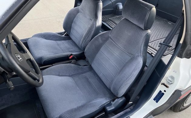 You must look long and hard to find anything inside this CRX deserving criticism. The seller identifies a couple of minor cigarette burns on the driver’s seat as the only issues. Otherwise, the Blue cloth trim looks exceptional for its age. Cloth is one aspect of Hondas from this era that is prone to wear and deterioration, but this car’s condition further supports the mileage claim. And it isn’t going to get worse, because the seller has equipped the inside of this classic with sheepskin slipcovers, front floor mats, and a mat protecting the rear cargo area. This CRX may not feature air conditioning, but the AM/FM stereo radio will relieve boredom on long journeys.