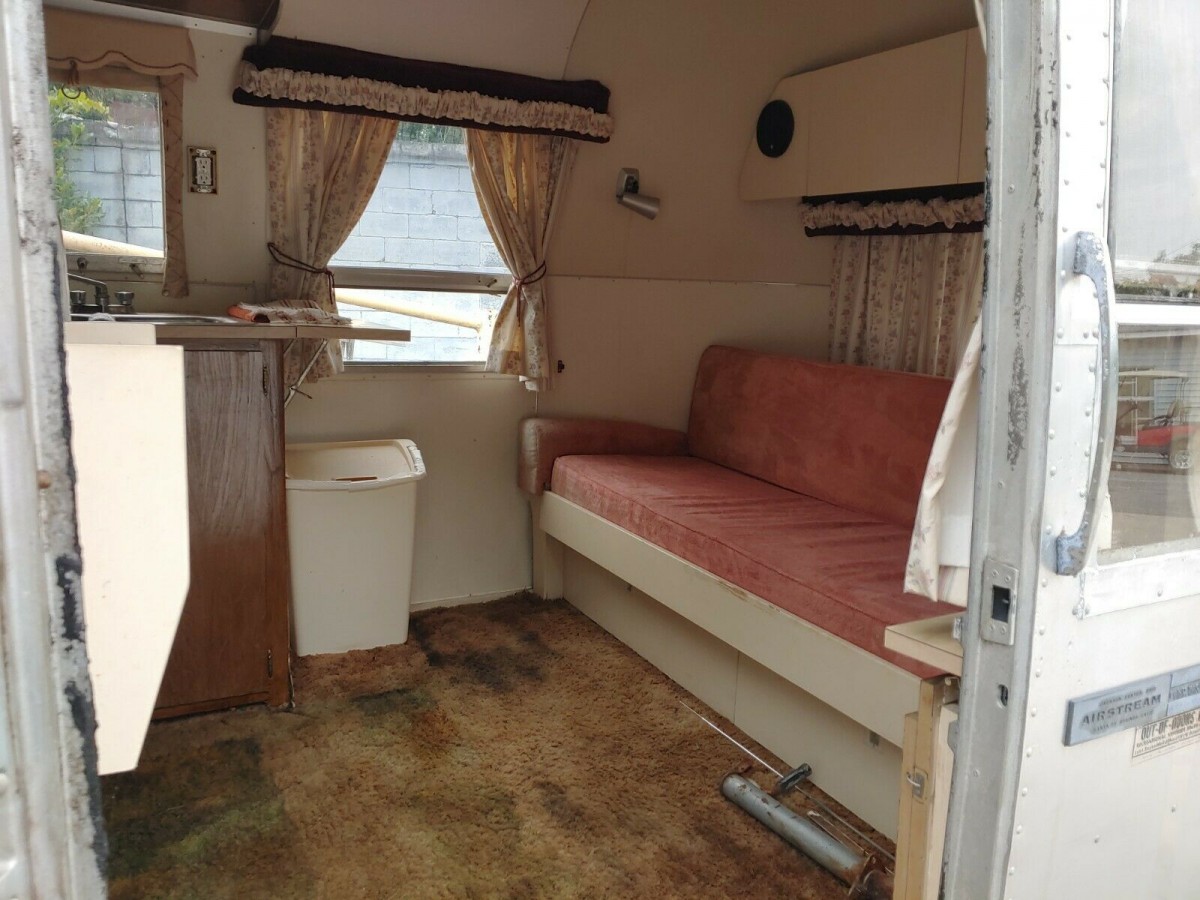Well, at some point the owners of this trailer said goodbye to using it, because even though the seller makes a big deal of this being unrestored and mostly original, I don’t think that’s a benefit here. It looks pretty run down, with some soft spots in the floor and a few plumbing leaks. The seller does say it has a new power cord and recently repacked wheel bearings, so at least it should transport well. There were a variety of Airstream Trade Winds, but I think this is the Trade Wind Double.