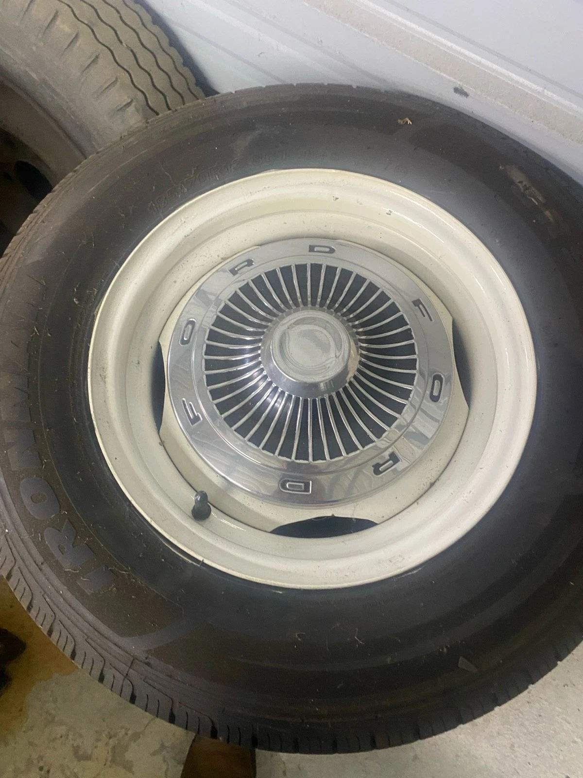While the aftermarket wheels add a little sportiness to a car that isn’t very sporty to begin with, I’d be inclined to reinstall the original steel wheels and hub caps. The wheels just look right with their matching Corinthian White paint.