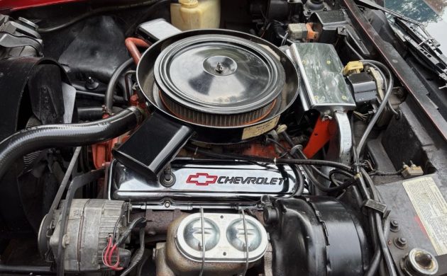 The seller doesn’t mention a restoration history when describing this Corvette. Therefore, if it is a genuine survivor, the condition of its interior is noteworthy. The Red vinyl upholstered surfaces are free from wear, and there is no evidence of the carpet fading that often afflicts C3s. It is impossible to assess the dash due to the limited images, but the console and remaining plastic look good. The wheel angle suggests that the first owner ticked the box beside the tilt/telescopic option, and they also equipped the car with power windows and an AM/FM radio.