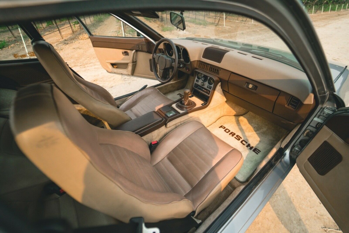 The cabin of the 944 didn’t change much over the years, but you can definitely discern between an early and late model based on the cockpit design. The early models also have that cool gauge pod in the center stack, but generally speaking, it feels much closer to the 70s in here than the 90s. The later 944s are better dailies, in my opinion, largely because the interiors just remind you of any other car made in the early 90s. The 944 comes with a tan interior that presents very well, right down to the carpets, but some of the piping on the bucket seats is warping in places. The dash is crack-free and this 944 appears to be a radio-delete car with a storage cubby where a radio might otherwise go.