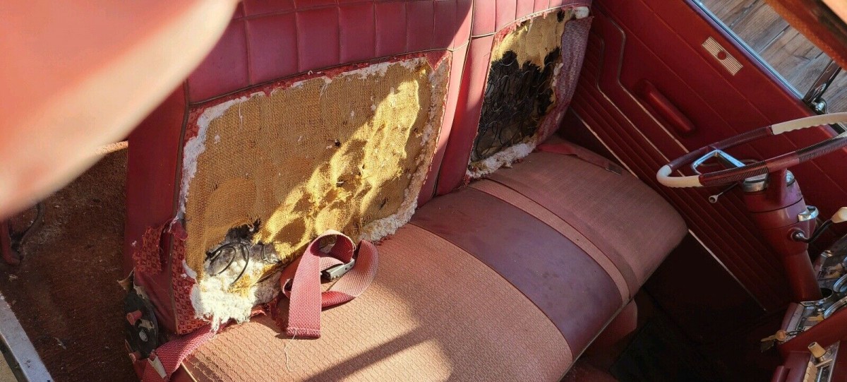Negatives are: Needs interior and wiring harness replaced, unknown drive train condition. After sitting for 50 years, it’s likely gonna have some stuck valves.