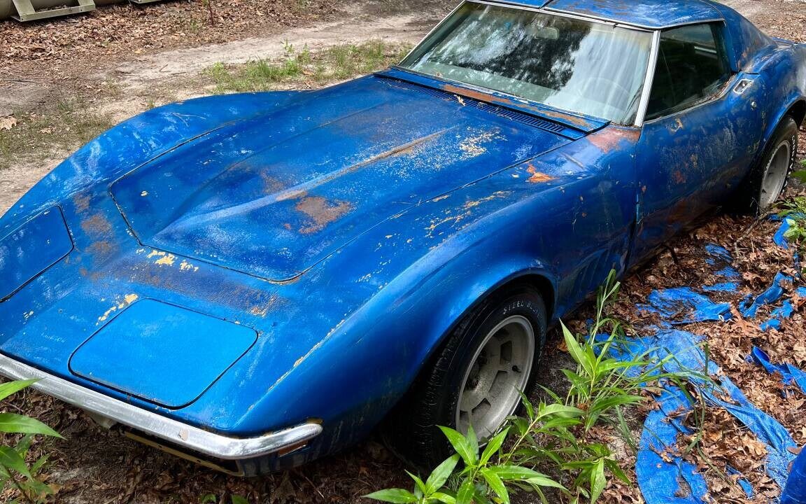 Rattle-can blue apparently covers what is probably rattle-can primer, some of both having ended up in places they should not. Early chrome-bumper C3s (third-generation Corvettes) bring a premium over the later plastic-bumper versions, but I’m not sure that matter much in this case. Even if you planned to drop this body on a modern chassis, the metal “bird cage” that supports the fiberglass body is probably shot. This can happen anywhere, but proximity to the Atlantic Ocean has likely accelerated this sports car’s demise.