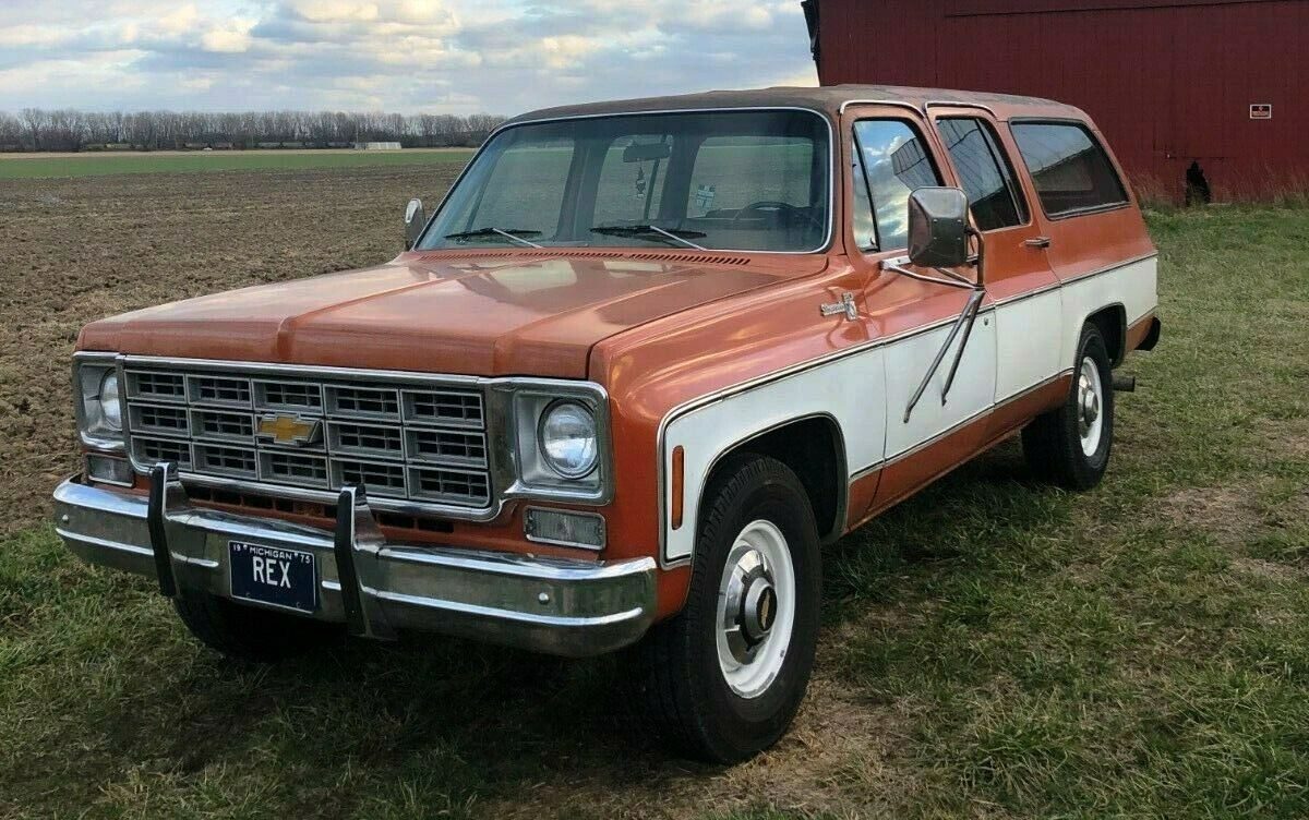 General Motors has produced a vehicle named “Suburban” in the format we describe today as an SUV (Sport Utility Vehicle) since 1935. In 1975, shoppers comparing four-door, fully-enclosed, full-sized trucks had few options, and even fewer a year later when the International Harvester Travelall faded into the sunset. This 1975 Chevrolet Suburban C20 in Ottawa Lake, Michigan barely differs from today’s Suburban in its basic design and envelope. Thanks to the efforts of some greasy Keebler Elves, it swallowed an early 2000’s powertrain in the form of an 8.1 L Vortec V8 and matching five-speed Allison automatic transmission. Though not perfect, the swap is sorted and the seller says this truck rides and drives “amazing.” The detailed listing here on eBay asks $14,450 for the solid-looking land schooner. Thanks to Wikipedia for some details.