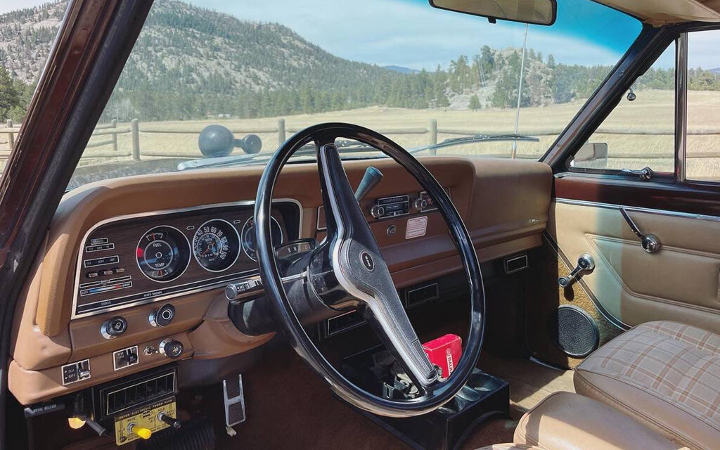The interior appears to be in outstanding condition. The seats look perfect and that plaid pattern is so classic mid/late-1970s that it makes me weep like a child. I wouldn’t have a clue how to drive this Wagoneer without a 19-inch touchscreen in the middle of the dash, what is this thing, from the stone age?! Obviously, I’m kidding, I’m not a fan of heavily-modern vehicles with all of those things. The only luxury that I like is power windows, for some reason. You can have the GPS and heated cup holders and all of that stuff. The transmission should be a GM-sourced THM-400 automatic.